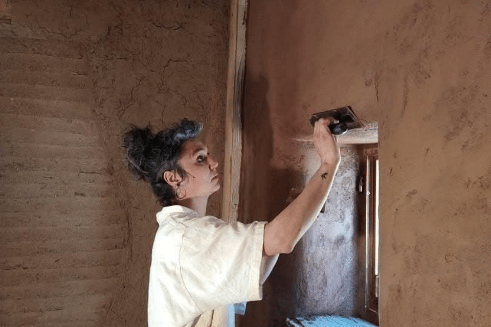 Elle a toujours eu la volonté de faire un métier manuel qui plus est utile. Sa première branche professionnelle s’engage dans le maraîchage. Par la suite et au gré des rencontres, elle se passionne pour les enduits en terre crue. De ce fait, elle obtient le CAP maçonne bâti ancien spécialité terre crue et complète sa formation en enduit intérieur à l’école européenne de l’art et de la matière à Albi. Elle crée son auto-entreprise en 2020.
